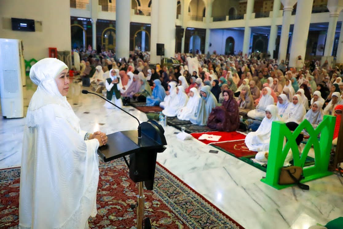 Gubernur Jawa Timur Khofifah Indar Parawansa bersama Wakil Gubernur Emil Elestianto Dardak turut hadir, menyatu bersama lebih dari 35 ribu jemaah dalam rangkaian ibadah malam. Kegiatan ini menjadi bagian dari upaya memperkuat spiritualitas sekaligus menghidupkan sepuluh malam terakhir Ramadan.