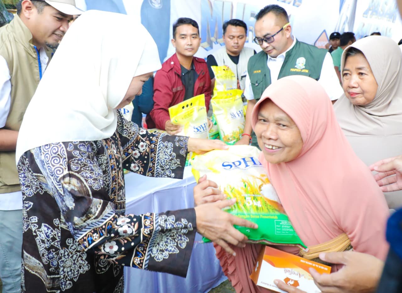 Tak hanya soal harga, Gubernur Khofifah juga memberikan sentuhan humanis dalam kunjungannya. Ia membagikan beras secara gratis kepada para lansia serta telur bagi ibu hamil dan anak-anak sebagai upaya pemenuhan gizi keluarga. Dukungan terhadap ekonomi lokal pun ditunjukkan dengan memborong produk-produk UMKM setempat yang ikut mejeng di lokasi.